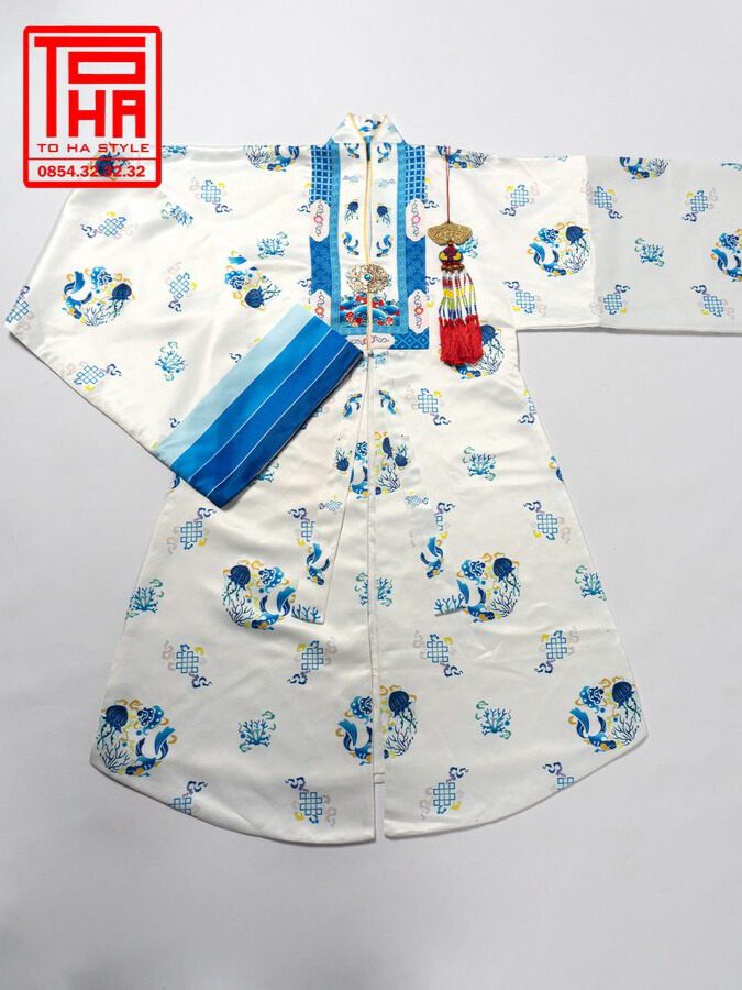 Sắc vàng mang dấu ấn hoàng tộc, thể hiện sự sang trọng và địa vị. Khi kết hợp với họa tiết cung đình tạo nên tổng thể rất “vương giả”. - Xanh dương / xanh lam / xanh ngọc