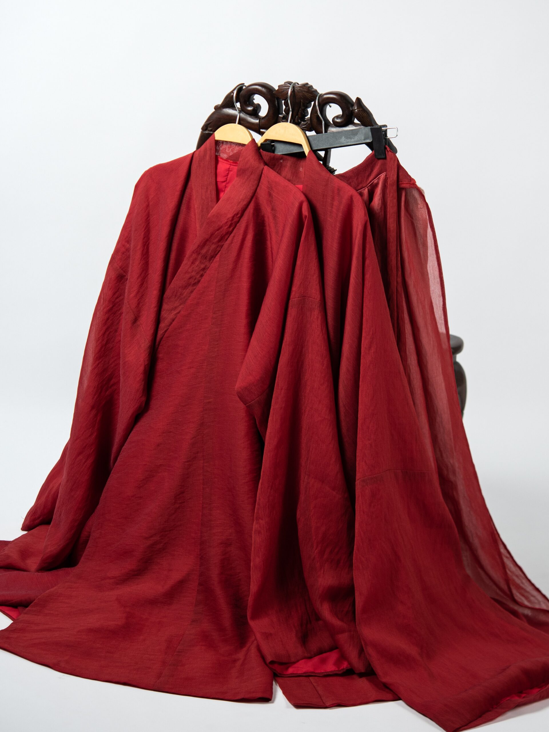 Bộ áo Đối Khâm đỏ son – áo Giao Lĩnh đỏ son – yếm đụp đỏ, chất liệu gấm
