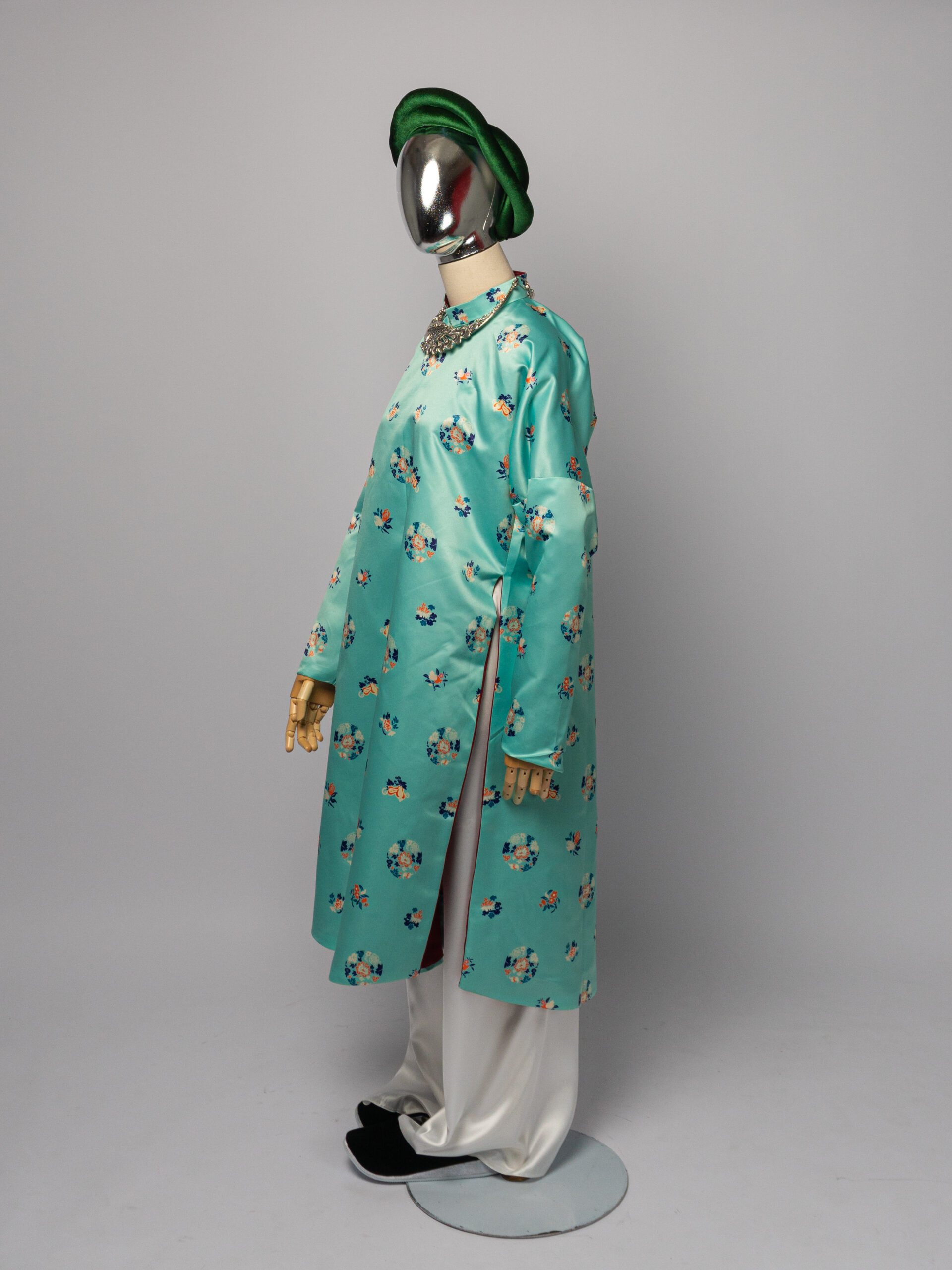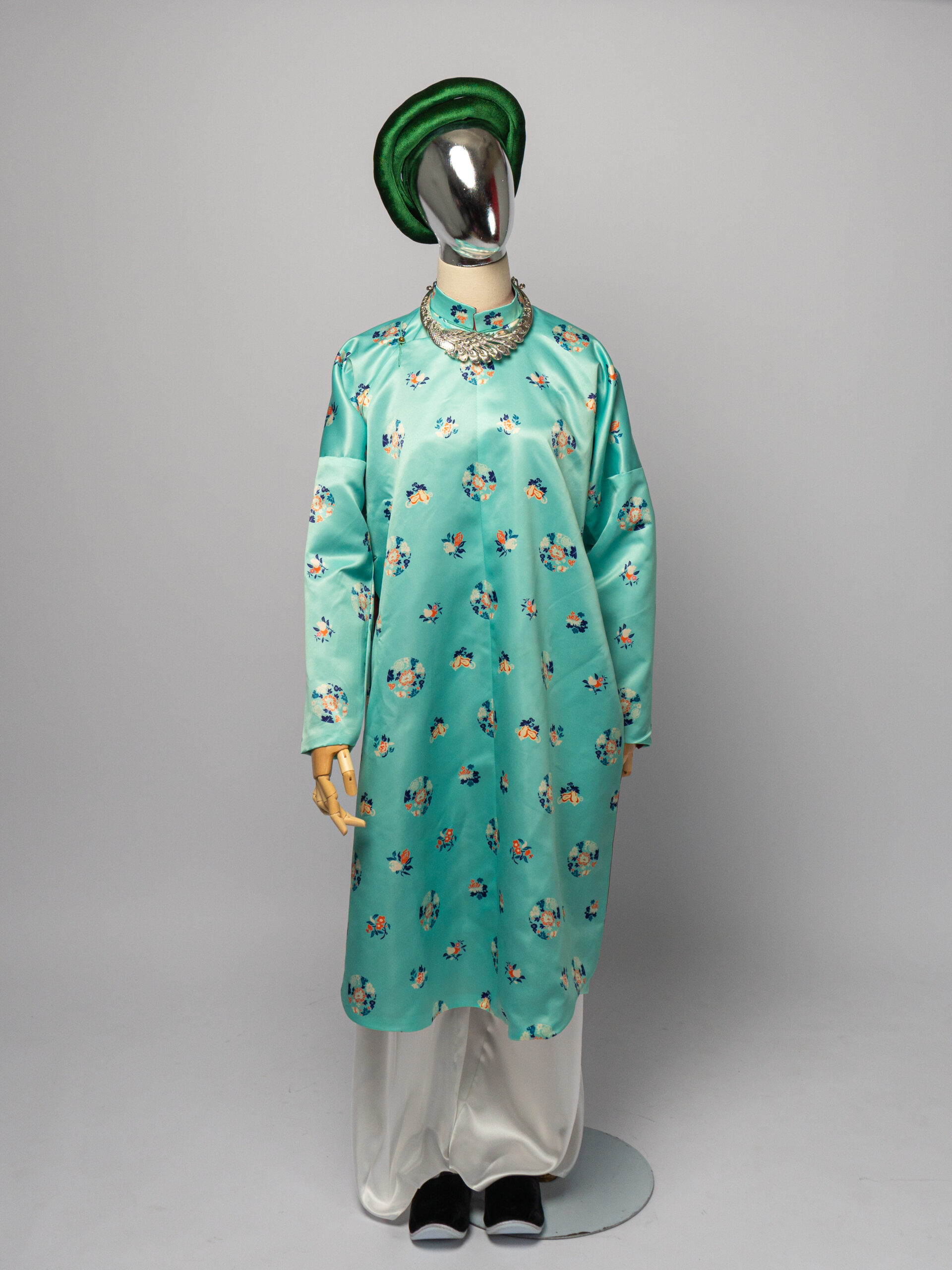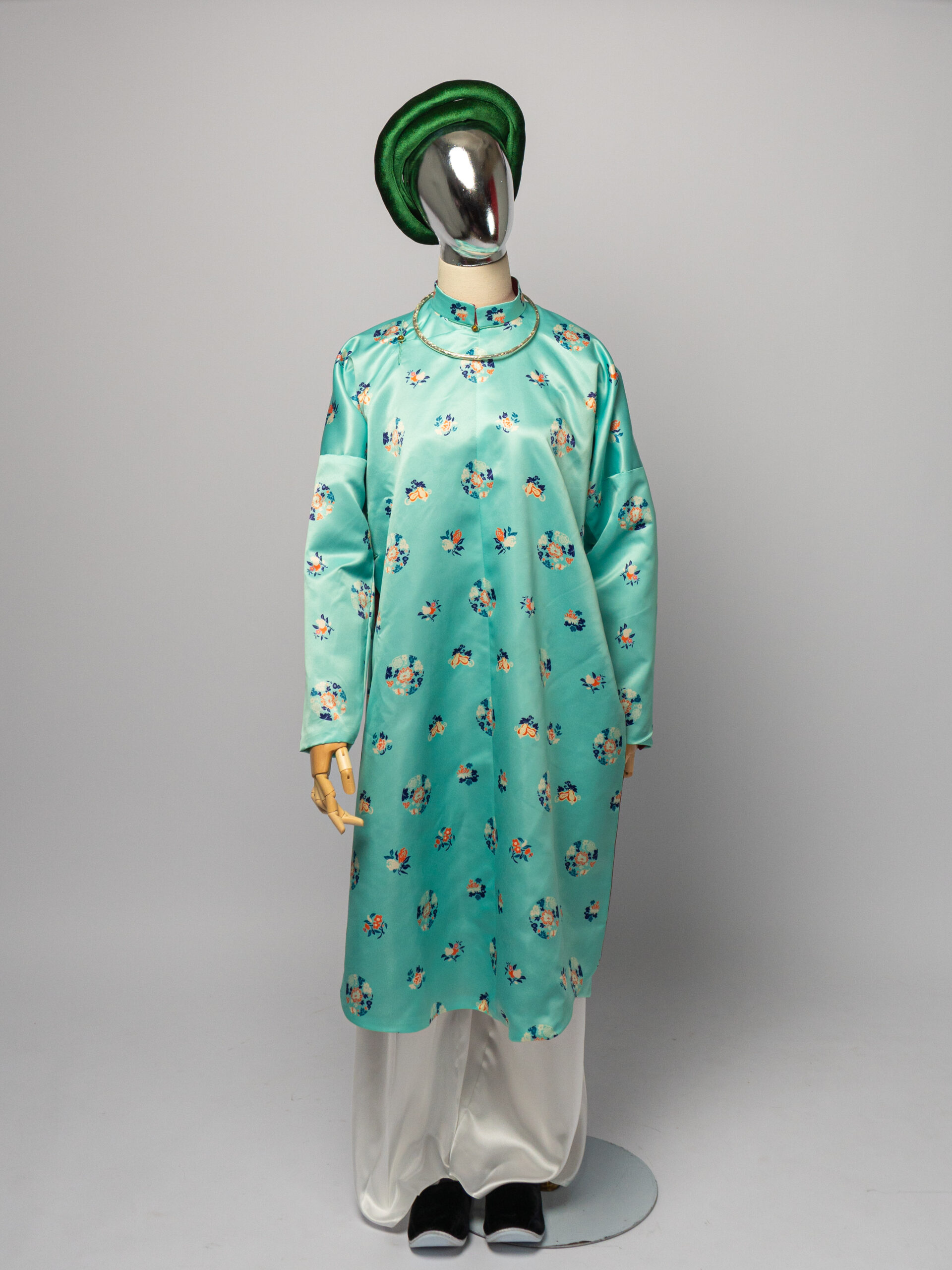 Hãy là người đầu tiên nhận xét “Bộ áo Ngũ Thân – Xanh ngọc, chất vải tafta in hình họa tiết hoa lá cách điệu” Hủy