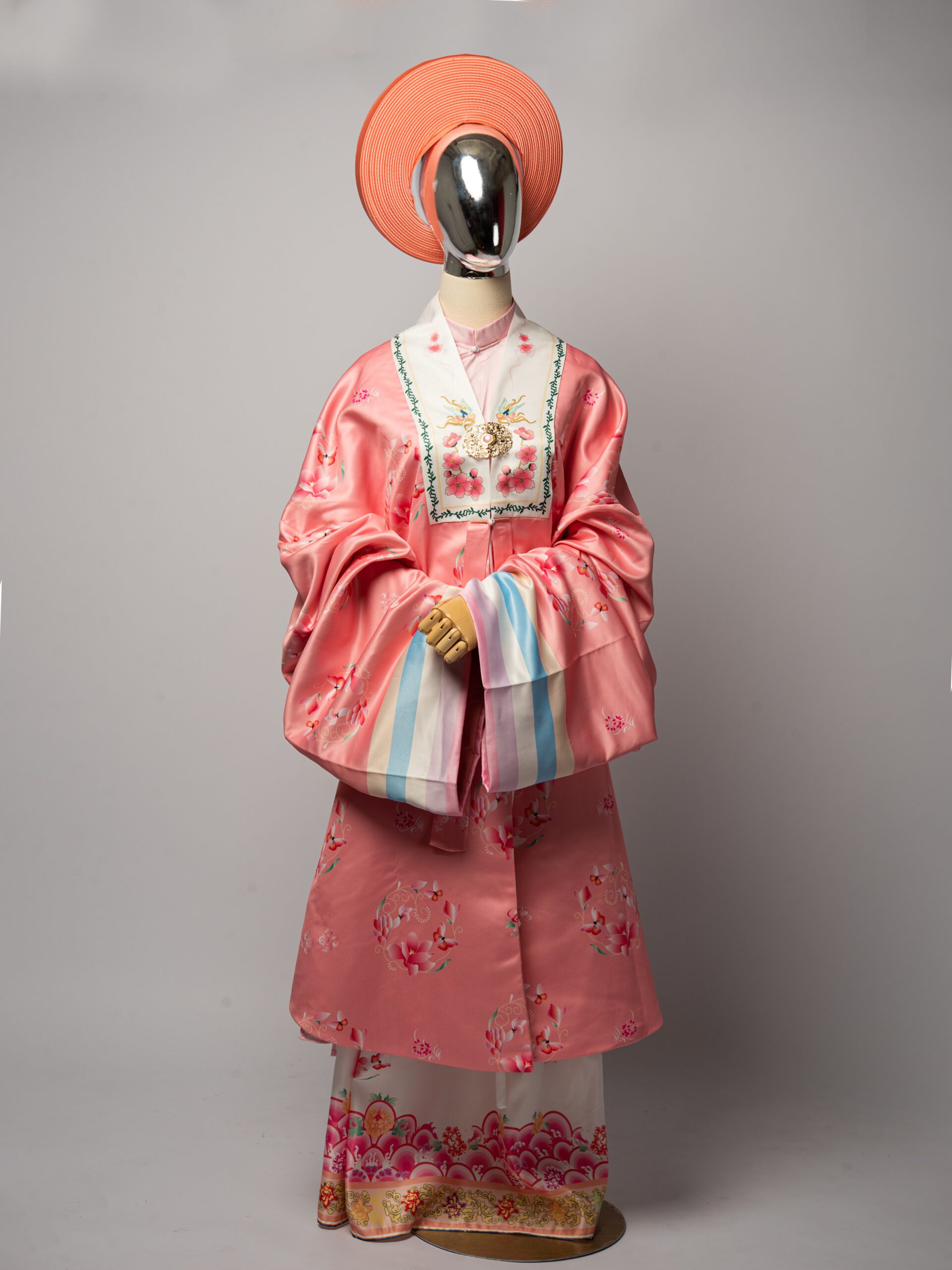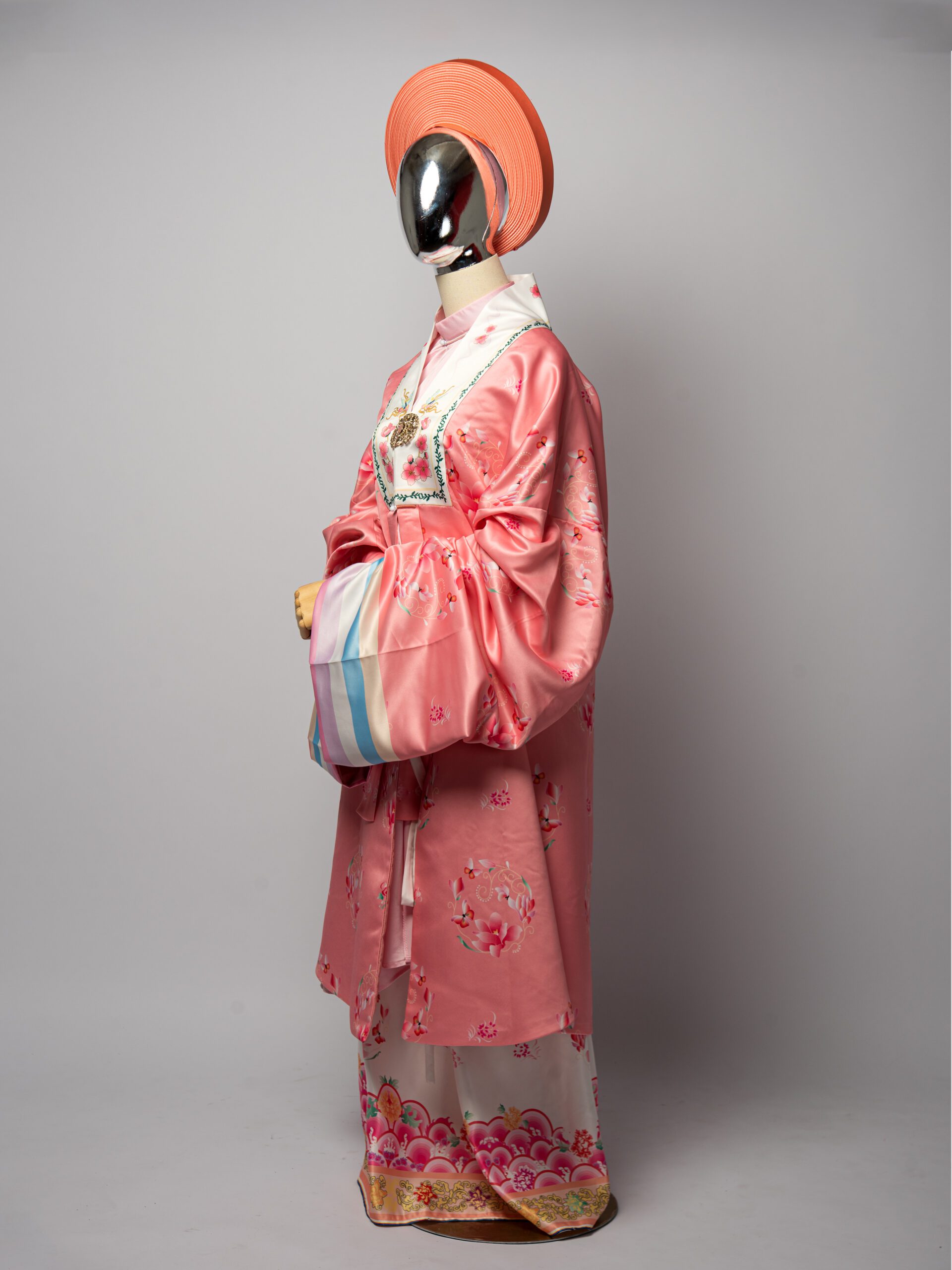 Bộ áo Nhật Bình nữ – hồng đào, vải tafta in họa tiết hoa đào