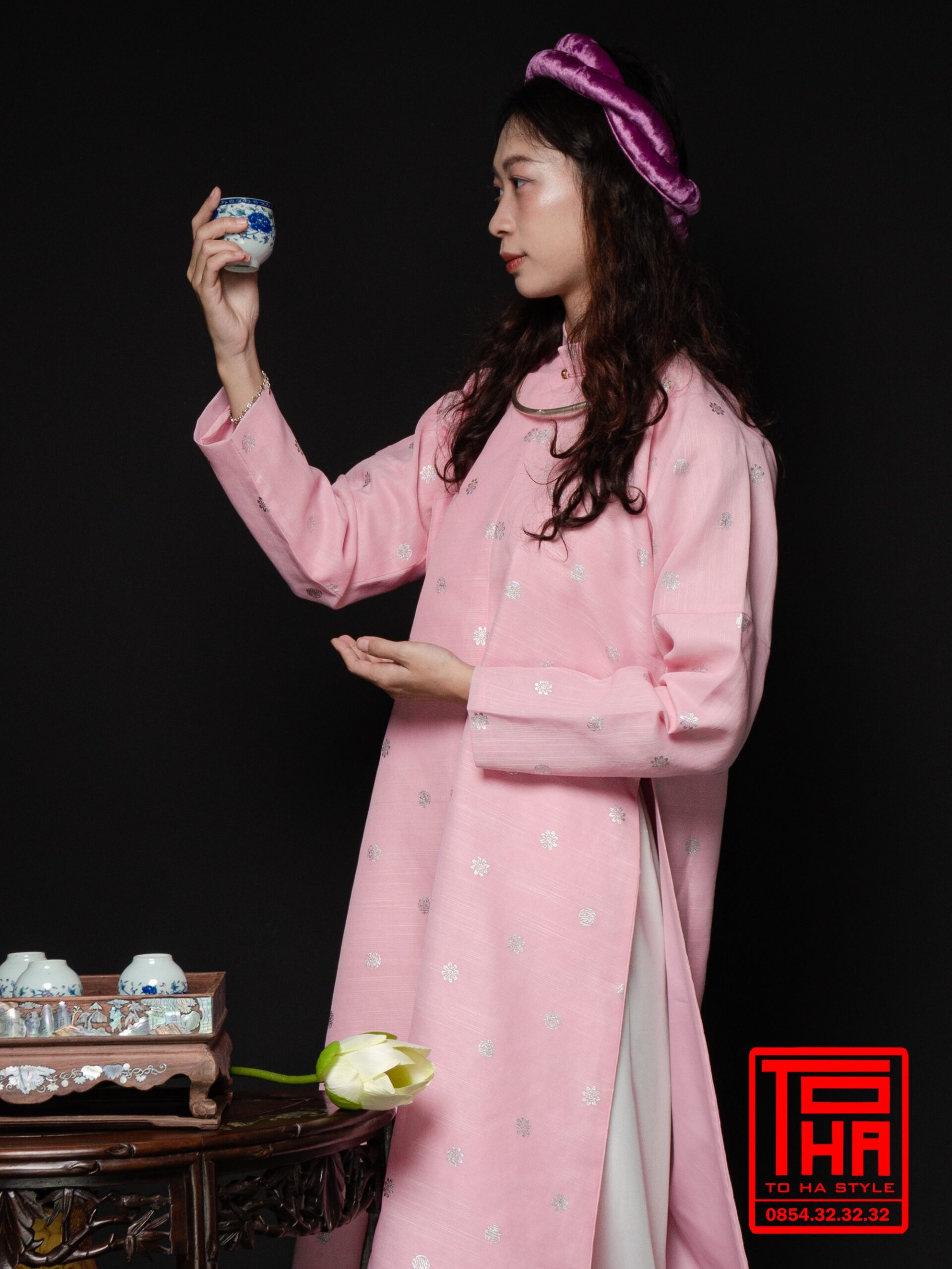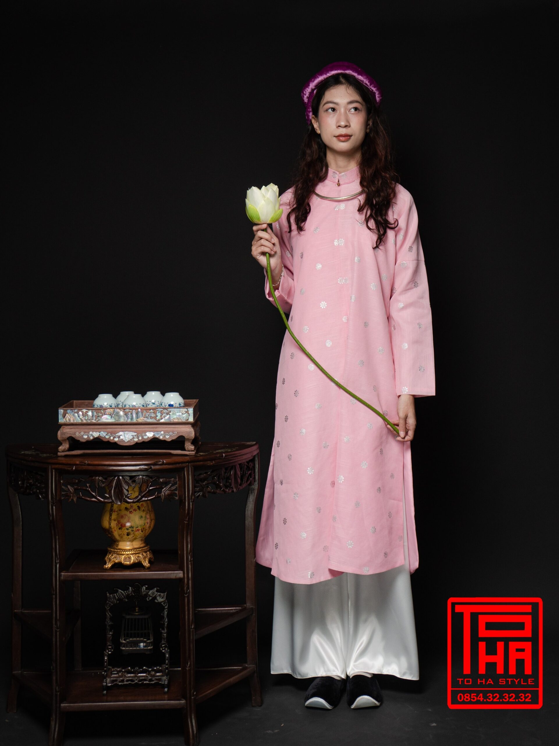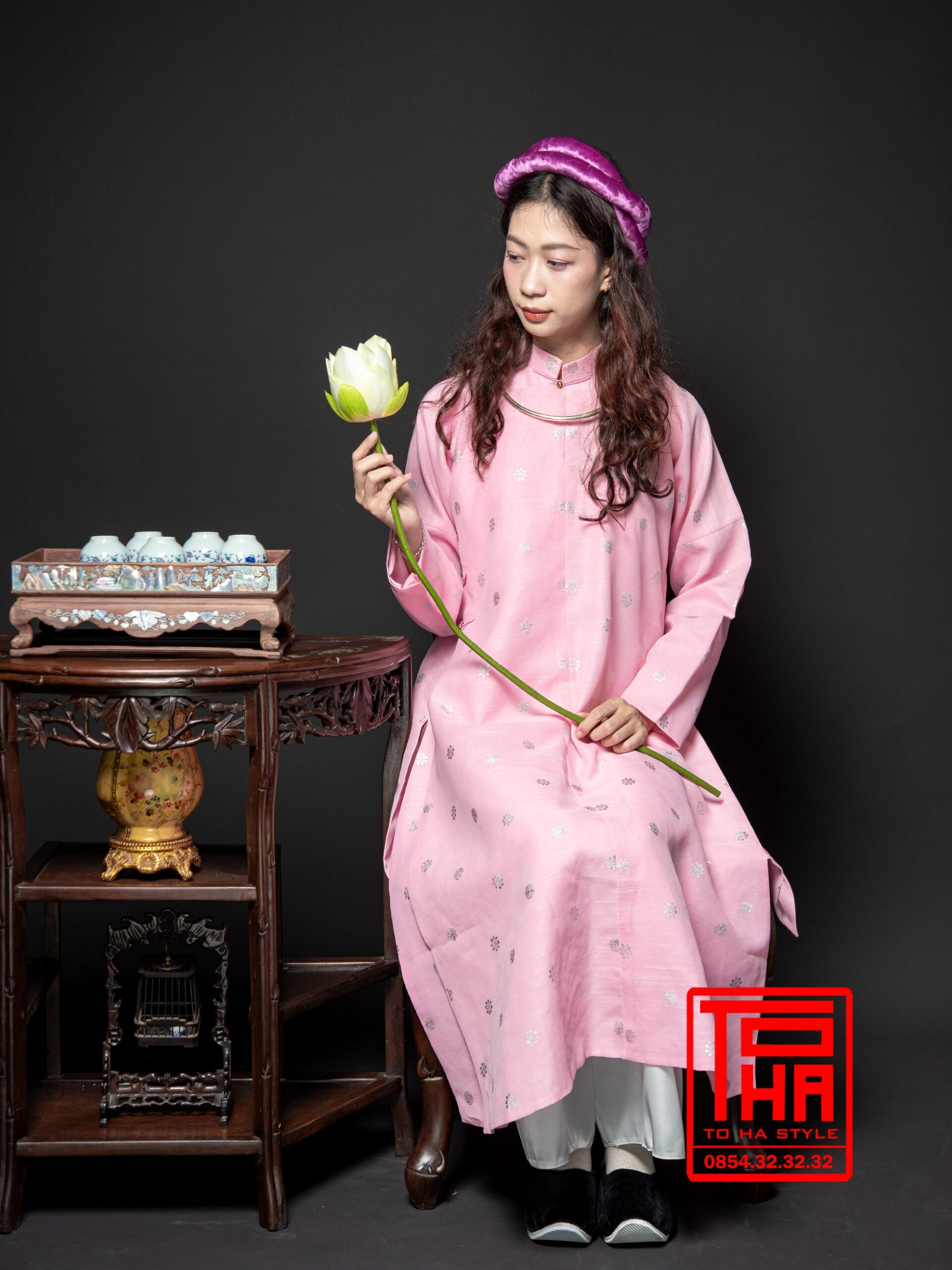 Cho thuê áo Ngũ Thân nữ – hồng phấn, chất liệu gấm họa tiết hoa văn cát tường